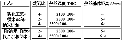 金剛石薄膜因硬度高、導熱率高及摩擦系數(shù)低等優(yōu)點,成為制作CFR刀具耐磨涂層的理想材料。于是,楊小潘等人在國內(nèi)外專家研究CFRP的切削加工特點的基礎(chǔ)上,有針對性開展了3種硬質(zhì)合金基體相同、涂層工藝和薄膜結(jié)構(gòu)不同的金剛石涂層誠銑刀研究,刀具涂層工藝參數(shù)如表所列。