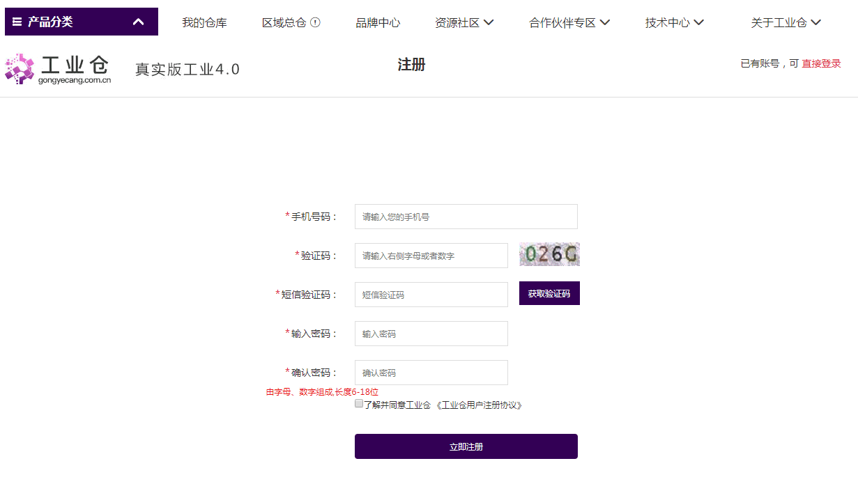工業(yè)倉(cāng)注冊(cè)登錄頁(yè)展示